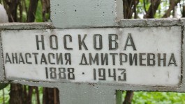 Носкова Анастасия Дмитриевна, 1888 г. р. Место проживания: неизвестно. Дата смерти: 1943. Место захоронения: Большеохтинское кладб. (В печатной Книге Памяти «Блокада» отсутствует.)