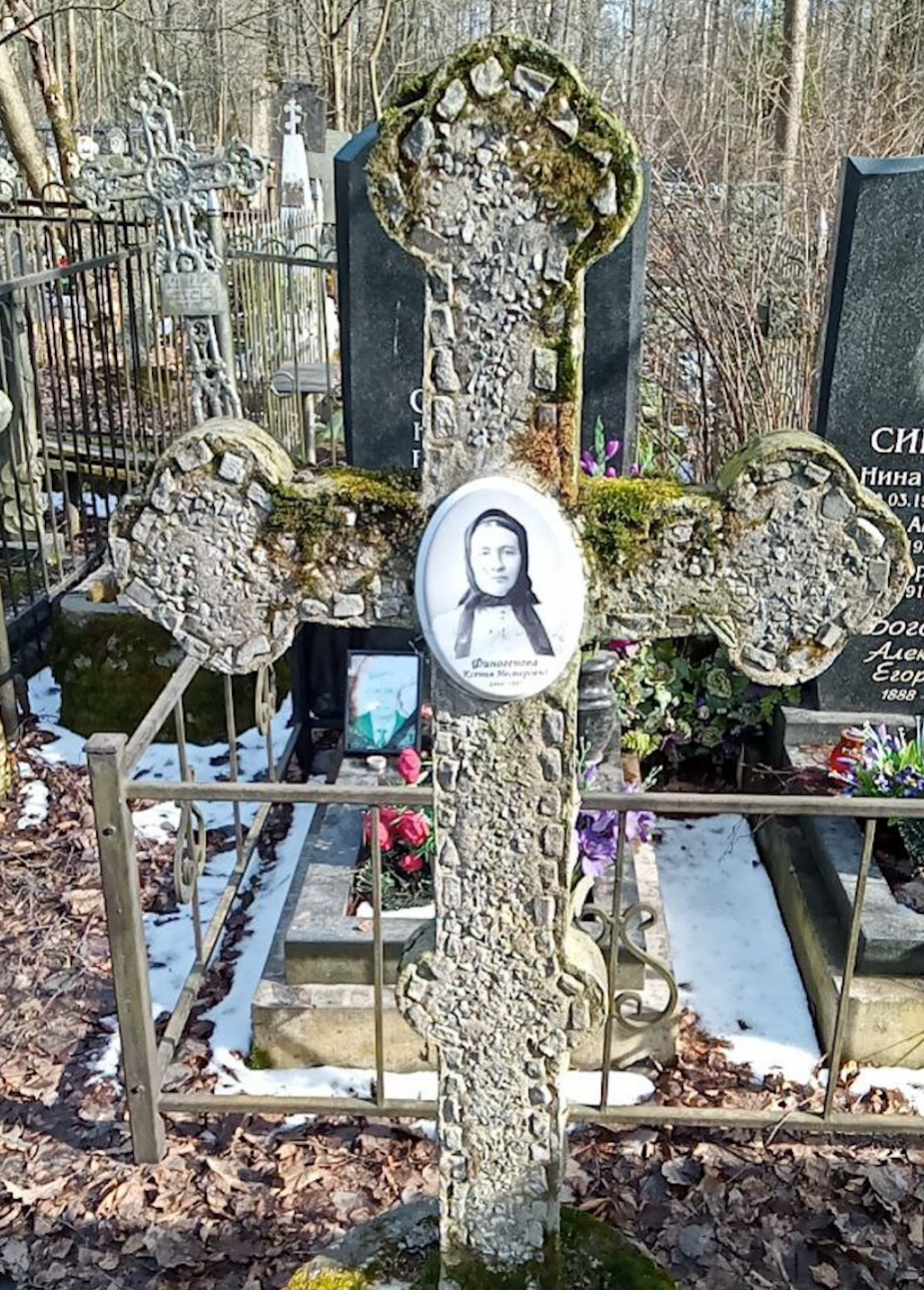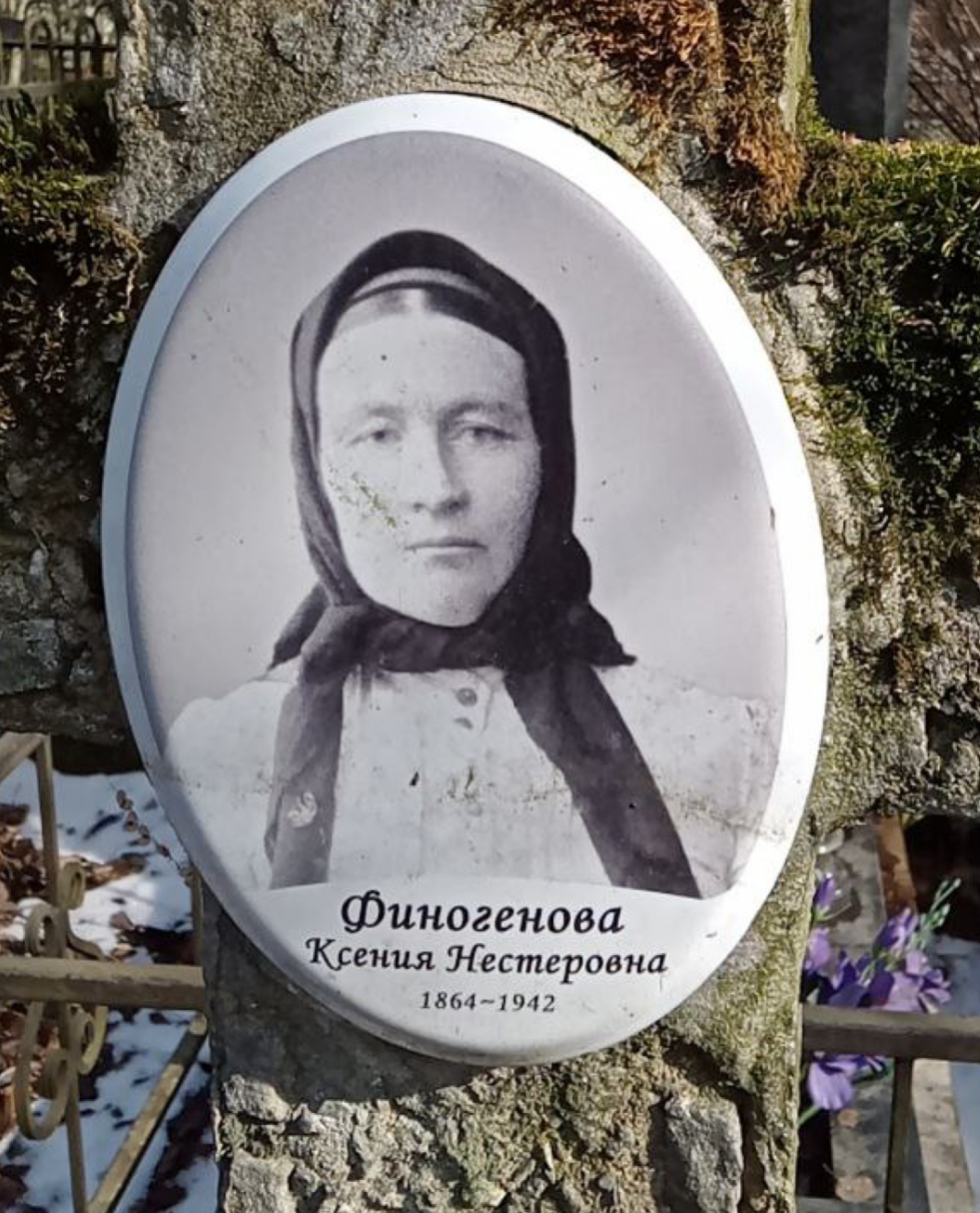 Финогенова Ксения Нестеровна, 1864 г. р. Место проживания: ул. Федосеенко, д. 16/1, кв. 1. Дата смерти: июнь 1942. Место захоронения: Богословское кладб. (Блокада, т. 32: Феногенова; 1867 г. р.; Пискаревское кладб.)