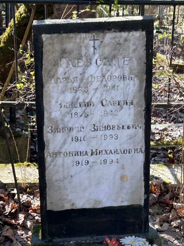 Гаевский Зиновий Саввич, 1875 г. р. Место проживания: Осиповский проезд, д. 104, кв. 1. Дата смерти: январь 1942. Место захоронения: Шуваловское кладб. (Блокада, т. 6: Пискаревское кладб.)