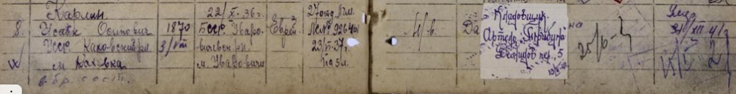 Эшман Арон Григорьевич, 1876 г. р. Место проживания: наб. р. Фонтанки, д. 45, кв. 8. Дата смерти: январь 1942. Место захоронения: Еврейское кладб. (Блокада, т. 35: Этман)