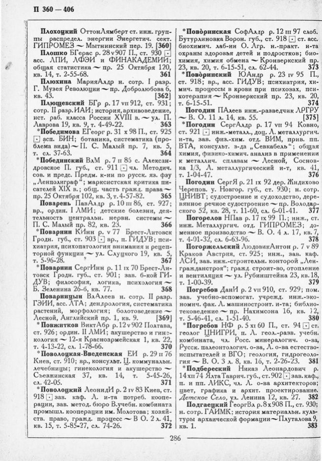 Подгаецкий Георгий Владимирович, 1908 г. р. Место проживания: Плуталова ул., д. 9, кв. 1. Дата смерти: декабрь 1941. Место захоронения: Серафимовское кладб. (Блокада, т. 24)