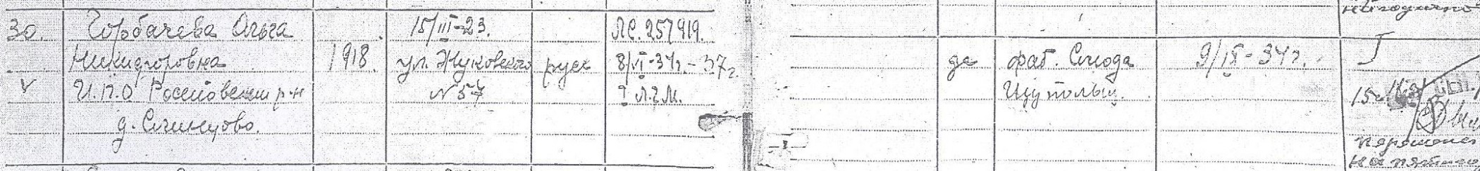 Васильева Ольга Никифоровна (урожд. Горбачева), род. 1918. Место проживания: пр. Римского-Корсакова, д. 89, кв. 13. Эвакуирована в Куйбышев. Ум. в 1967. (Они пережили Блокаду, т. 2)