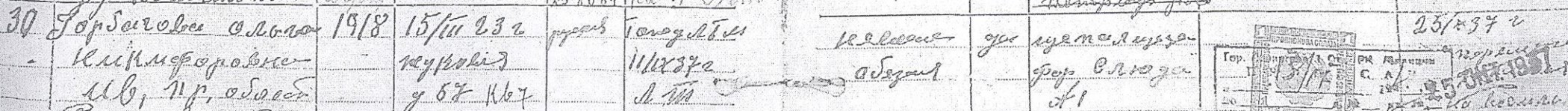 Отец — Горбачев Никифор Алексеевич, 1880 г. р. Место проживания: пр. Римского-Корсакова, д. 89, кв. 13. Дата смерти: 30 декабря 1941. Место захоронения: неизвестно. (Блокада, т. 7: Николай)
