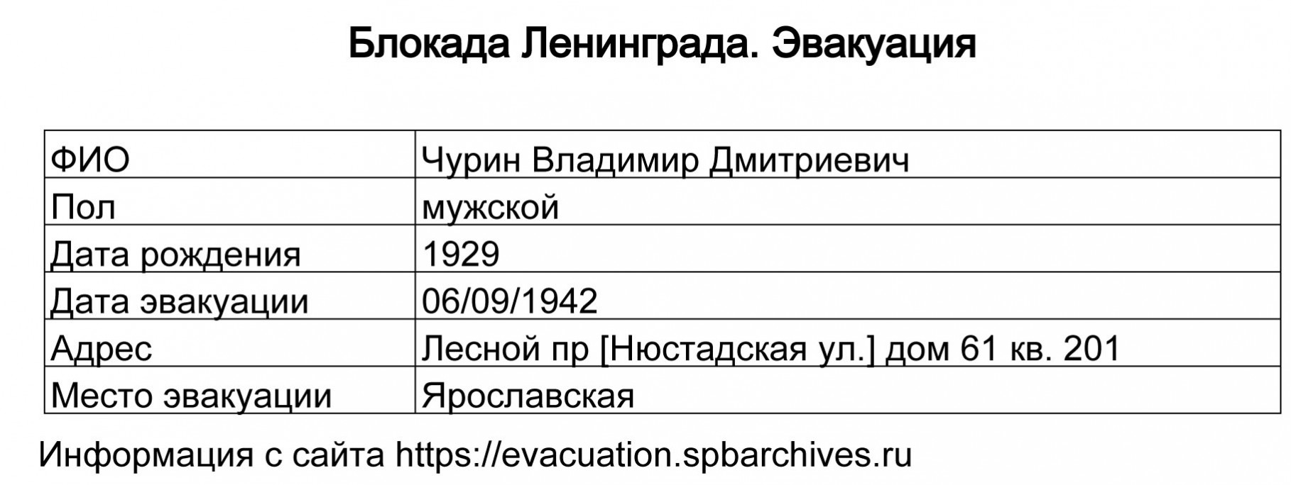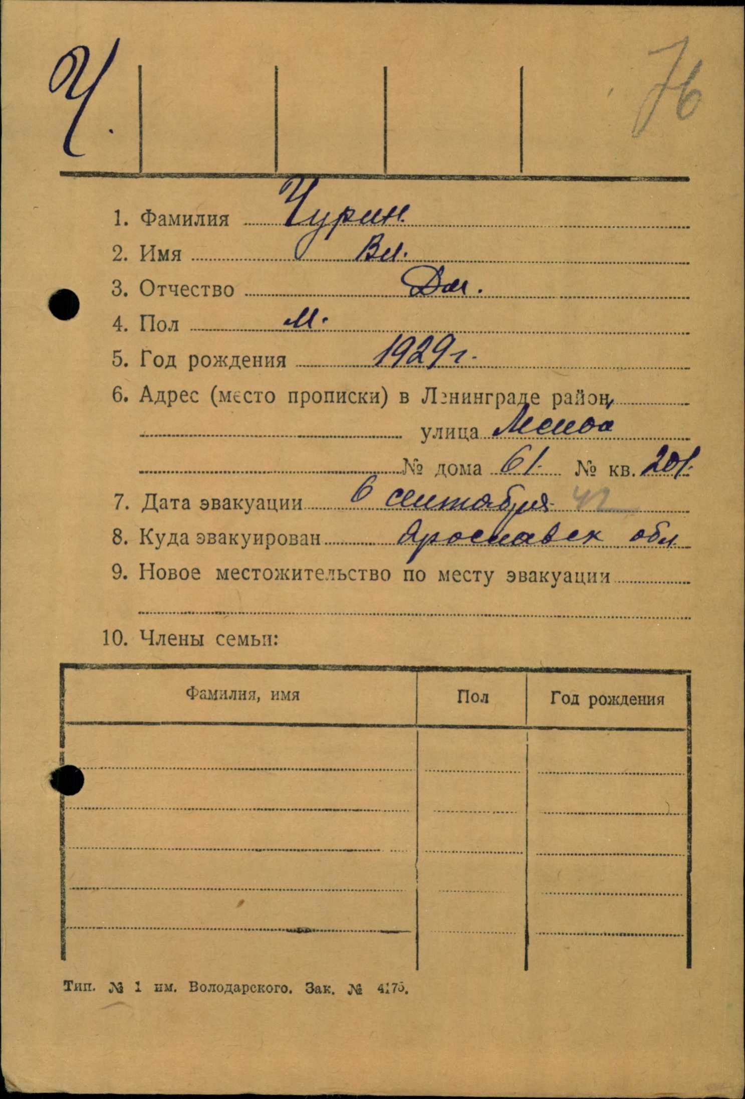 Отец маленького Володи сидел в сталинских лагерях. Мама дала сыну свою фамилию и перебралась к брату в Ленинград. Инженер Анатолий Васильевич Чурсин руководил аварийной службой Ленэнерго. Жили в Доме специалистов на Лесном. Его арестовали 3 октября 1937 года, когда Володя только пошёл в первый класс. Вскоре сообщили подлую формулировку, мол, выслан на 10 лет в дальние лагеря без права переписки.