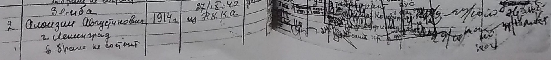 В период Советско-финляндской войны Алоизий Земба был в составе 100-го отдельного лыжного батальона, получил тяжёлое ранение. Историей батальона мы занимаемся несколько лет. Изучая судьбы участников тех событий и их семей, я обнаружила ошибку в сведениях об отце Алоизия в списке погибших в Блокаду: вместо правильного «Земба Августин Павлович» в Книге памяти значится «Зембо Августина Павловна». Потом заказала и получила архивную копию Домовой книги (прилагается).