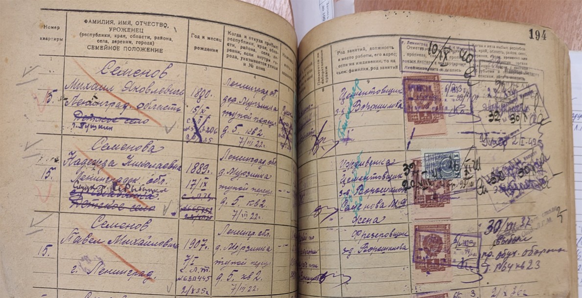Источник: ЦГА СПб. Фонд Р-7965. Опись 131. Дело 385. Домовая книга прописки граждан по адресу: пр. Обуховской Обороны, д. 99/101.