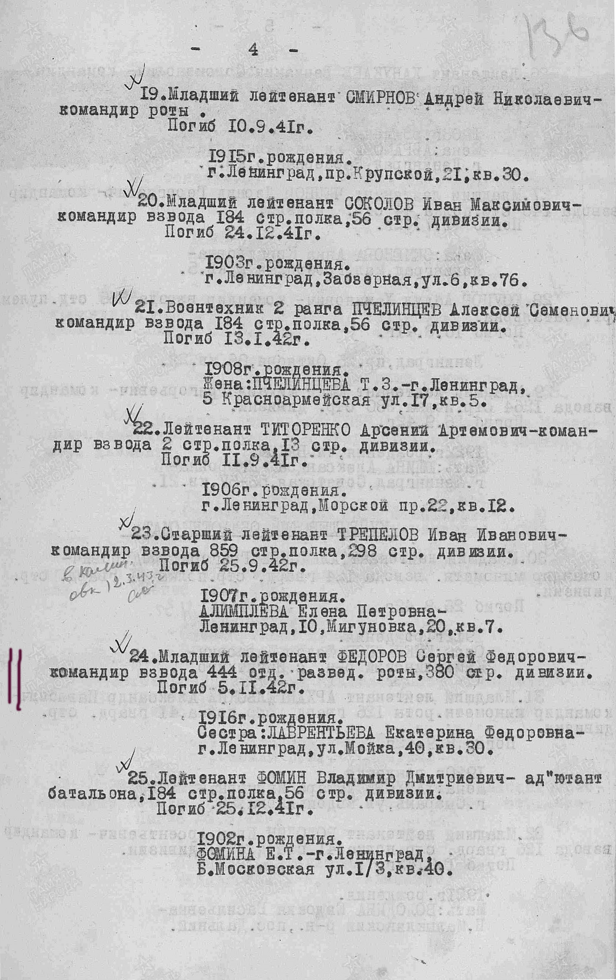 Источник сведений: Книга памяти «Блокада, 1941–1944»