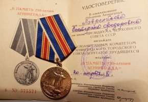 медаль «В память 250-летия Ленинграда» от 20 марта 1958 года;