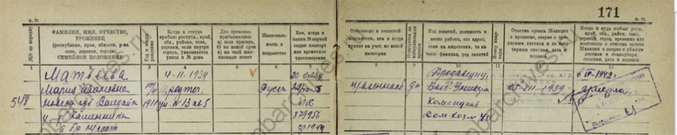Место рождения: Новгородская губерния, Валдайский уезд, деревня Каменник. Последнее место работы: комендант домохозяйства № 40. Источник информации: ЦГА СПб. Фонд Р-7965. Опись 111. Дело 691. Домовая книга прописки граждан по адресу: пр. Лесной, д. 37, корп. 5.