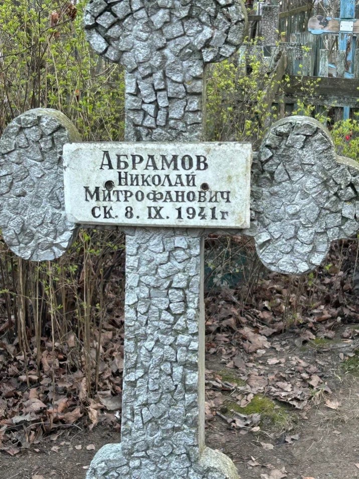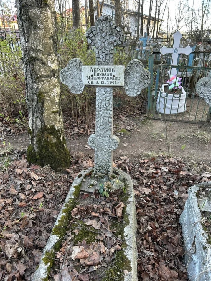 Абрамов Николай Митрофанович, 1880 г. р. Место проживания: наб. канала Грибоедова, д. 24, кв. 40. Дата смерти: сентябрь 1941. Место захоронения: Шуваловское кладб. (Блокада, т. 1: Место захоронения: неизвестно.)