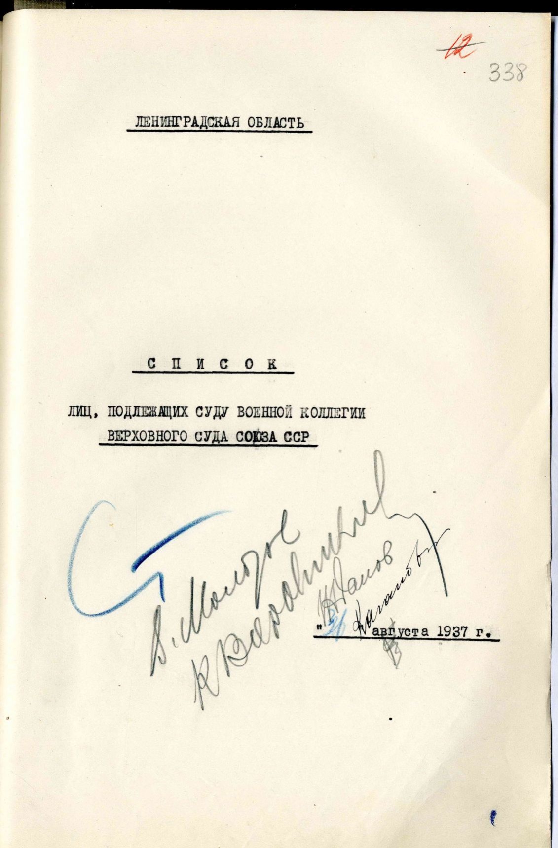 Ошибочно как расстрелянные в Ленинграде в том вошли имена узников Соловецкой тюрьмы госбезопасности, этапированных на материк 2–3 декабря 1937 года. Их могли расстрелять в районе Лодейнопольского лагпункта, куда выезжал «для выполнения специального поручения» мл. лейтенант П. Д. Шалыгин. См. справку о Павле Флоренском.